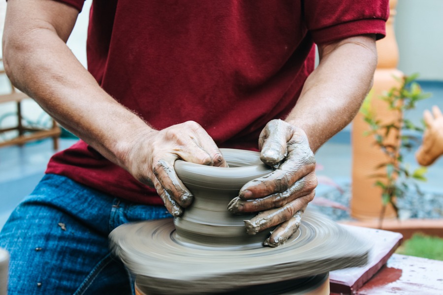 Alguns artesãos utilizam a técnica das mãos, que fortalece a característica de rusticidade