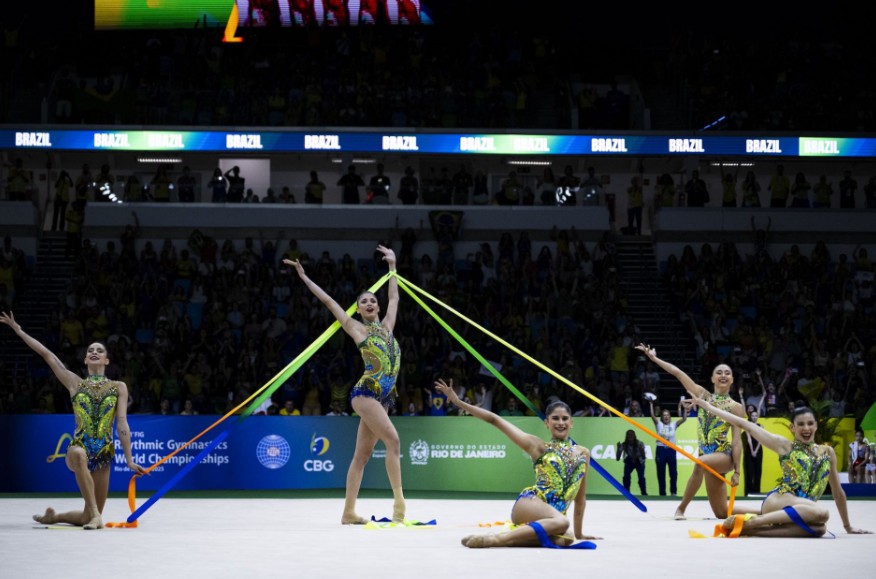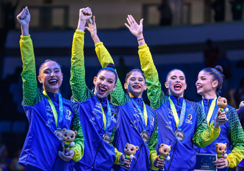 Diante de uma Arena Carioca lotada, o Brasil somou 55.250 pontos e garantiu a prata no conjunto geral. O Japão ficou com o ouro (55.550), e a Espanha completou o pódio com o bronze (54.750). Ao som de “Evidências”, o conjunto conquistou 27.850 pontos na série com 3 arcos e 2 bolas, emocionando o público. Na sequência, voltou à arena com a série das cinco fitas, em uma coreografia que celebrou a cultura brasileira, alcançando 27.400 pontos.