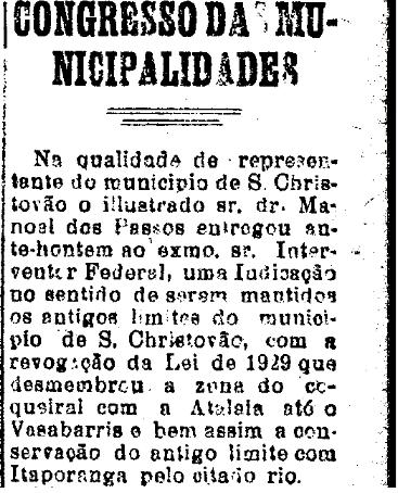 Publicado no jornal aracajuano A Tribuna, em 31 de outubro de 1931.