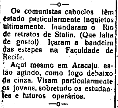 Publicado no jornal aracajuano A Cruzada, em 1º de janeiro de 1950.