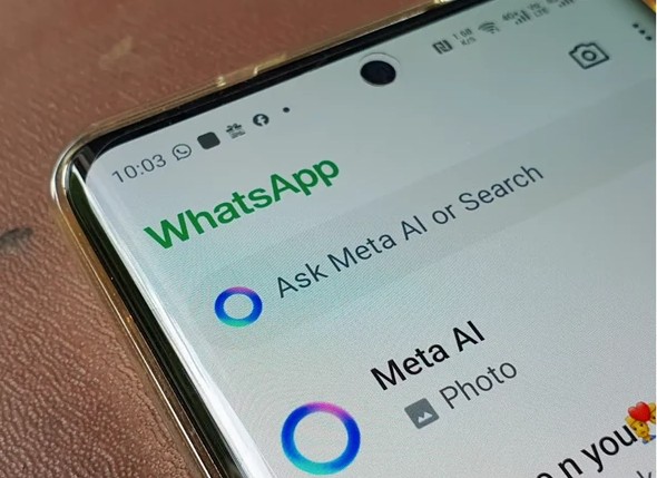 O círculo azul no menu do WhatsApp indica o ponto de acesso à Meta AI. Ao clicar nele, você pode fazer perguntas e conversar com o assistente, que responde usando tecnologia semelhante ao ChatGPT.