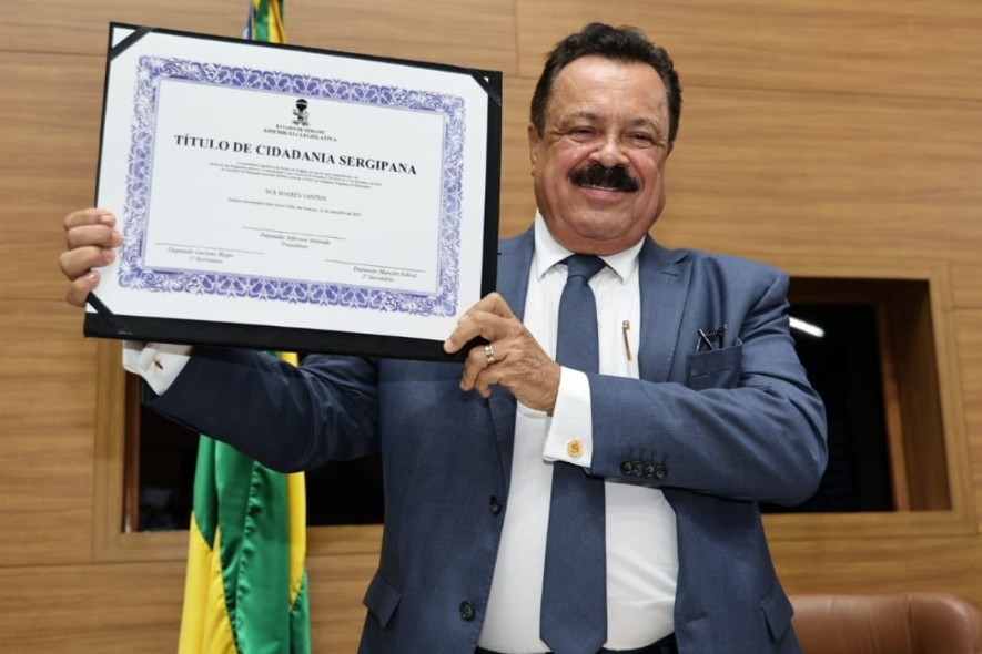 Nascido em Salvador, o empresário Ivã Soares Santos é o mais novo cidadão de Sergipe. Em sessão solene, a Assembleia Legislativa o homenageou, ontem, com o Título de Cidadania, concedido graças a indicação do deputado estadual Adailton Martins (PSD). Ivã Soares se mudou para Aracaju em 1987, acompanhando a esposa, Miriam Soares, transferida para assumir uma loja num shopping da cidade. Na capital sergipana ele fundou a Legislar Imobiliária. Posteriormente, se formou em Direito e passou a atuar com foco no Direito Imobiliário. Além disso, expandiu sua atuação para o agronegócio, atuando como pecuarista e gerando empregos diretos e indiretos no interior sergipano. Ah, bom!
