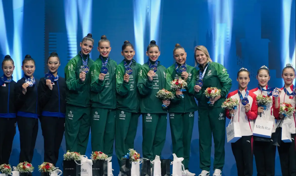 A ginástica rítmica brasileira conquistou pela primeira vez na história uma medalha de ouro no conjunto geral em uma etapa da Copa do Mundo da modalidade. A façanha ocorreu, nesse sábado (19), na etapa de Milão (Itália), quando as brasileiras subiram ao topo do pódio, com nota final 52.850, acima das obtidas pela equipe japonesa (50.500) e chinesa (50.200), que ficaram com prata e bronze, respectivamente. Ressalte-se que a Seleção Brasileira de Ginástica Rítmica é sediada em Aracaju.