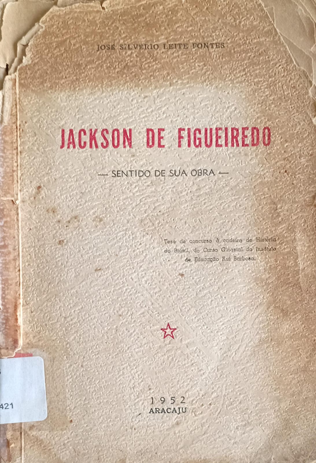 A primeira foi Jackson de Figueiredo, com a finalidade de concorrer à cátedra de História do Brasil na Escola Normal. Escolhi Jackson de Figueiredo porque era um líder católico sergipano, embora já naquela época eu não me afinasse tanto com seu pensamento propriamente dito, mas a sua personalidade que era incomum, merecia ser analisada.
