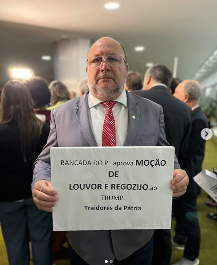 O deputado federal João Daniel (PT) não escondeu a indignação com a bancada do PL na Câmara que aprovou uma moção de regozijo em apoio à decisão do presidente dos Estados Unidos, Donald Trump, de taxar em 50% as exportações brasileiras: “Foi um gesto vergonhoso de traição aos interesses nacionais”, fuzila o petista. De acordo com Daniel, a tentativa dos EUA de interferir no Brasil é uma jogada política para alimentar a extrema-direita. Por fim, o deputado afirmou que, “querendo ou não, Bolsonaro vai responder pelos seus crimes, junto a todos os golpistas que atacaram a democracia”. Danôsse!