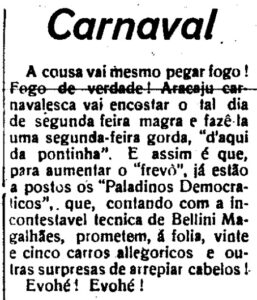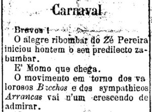 Carnavais estampavam jornais do século passado com notícias sobre grandes bailes e festas. Exemplares de jornais da época contam um pouco desta história. Na década de 1920, a crônica carnavalesca já havia se tornado uma modalidade importante e muito esperada pelos leitores. Os dias de folia são retratados, naquela década, como a maior festa nacional feita pelo povo.