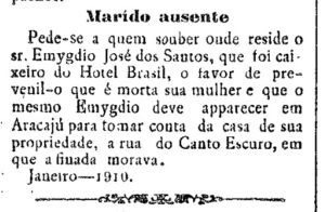 Publicado no jornal estanciano A Razão, em 20 de fevereiro de 1910.