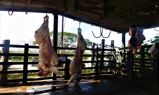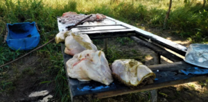 No local, os policiais flagraram um ambiente sem condições mínimas de higiene para o corte e armazenamento de carne. No abatedouro clandestino havia partes de animais abatidos espalhadas pelo chão de areia. Também havia peças de carne ao ar livre e sem refrigeração.