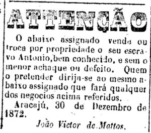 Publicado no Jornal do Aracaju, em 8 de janeiro de 1873.