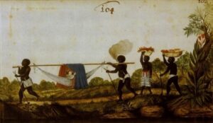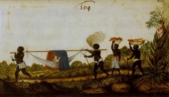 Mulher transportada por escravizados africanos no Brasil Holandês. Fonte: Zacharias Wagner: Thier-Buch, Dresden, 1634–1641