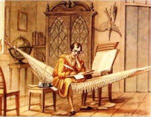 Debret. Sábio trabalhando no seu gabinete no RJ, 1827. Acervo: Fundação Raimundo de Castro Maia, Rio de Janeiro