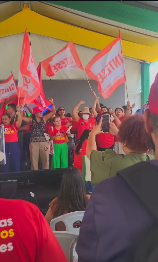 Os professores e professoras da rede estadual permanecem em greve contra a falta de diálogo do governo de Sergipe. Ontem, a categoria bateu ponto no mutirão “Sergipe é Aqui”, promovido pelo Executivo estadual no município de São Cristóvão. A manifestação pacífica encurralou o governador Fábio Mitidieri (PSD), obrigando-o a receber no local do evento a professora Ana Lúcia Menezes e um representante do Sindicato dos Educadores. Posteriormente, o governo lamentou que o protesto dos grevistas tenha tumultuado as atividades do “Sergipe é Aqui”. Hoje, os professores e professoras vão percorrer as feiras livres de Aracaju e do interior de Sergipe para pedir apoio da população ao justo movimento paredista iniciado na última segunda-feira. Bravo, bravo!