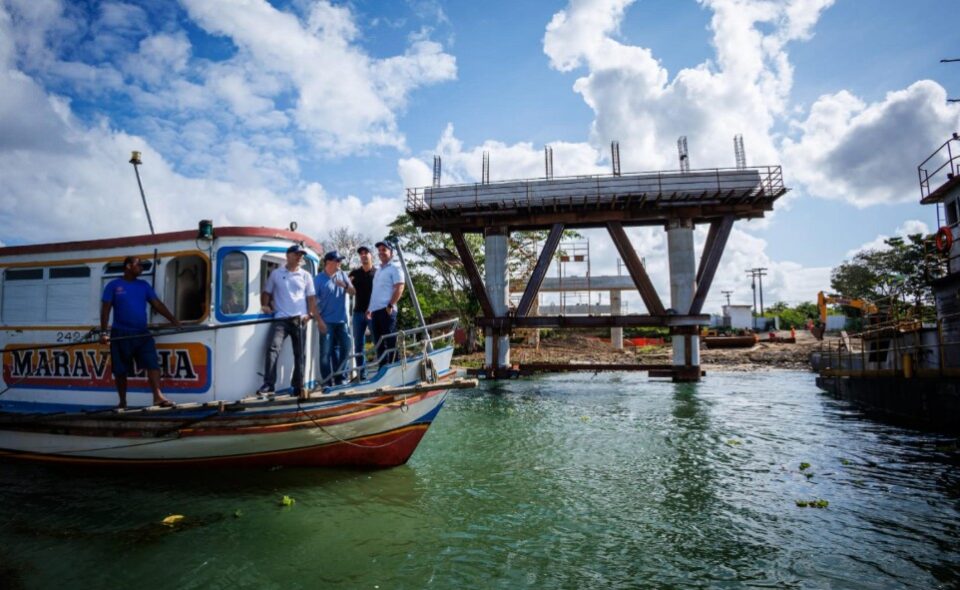 O ministro dos Transportes, Renan Filho (MDB), visitou as obras da ponte Penedo–Neópolis, que ligará os estados de Alagoas e